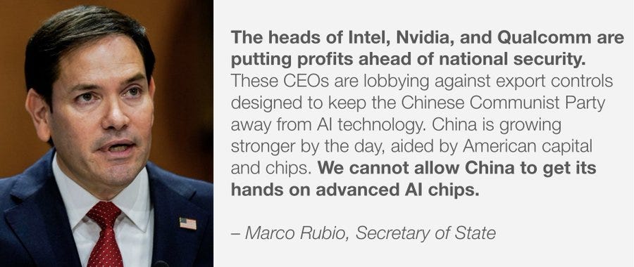 But if we’re not talking about that, because no one involved in this feels the AGI or ASI or is even mentioning existential risk at all, and we literally mean market share (as a reminder, when AI Czar David Sacks says ‘win the AI race’ he literally means Nvidia and other chipmaker market share, combined with OpenAI and other lab market share, and many prominent others mean it the same way)?