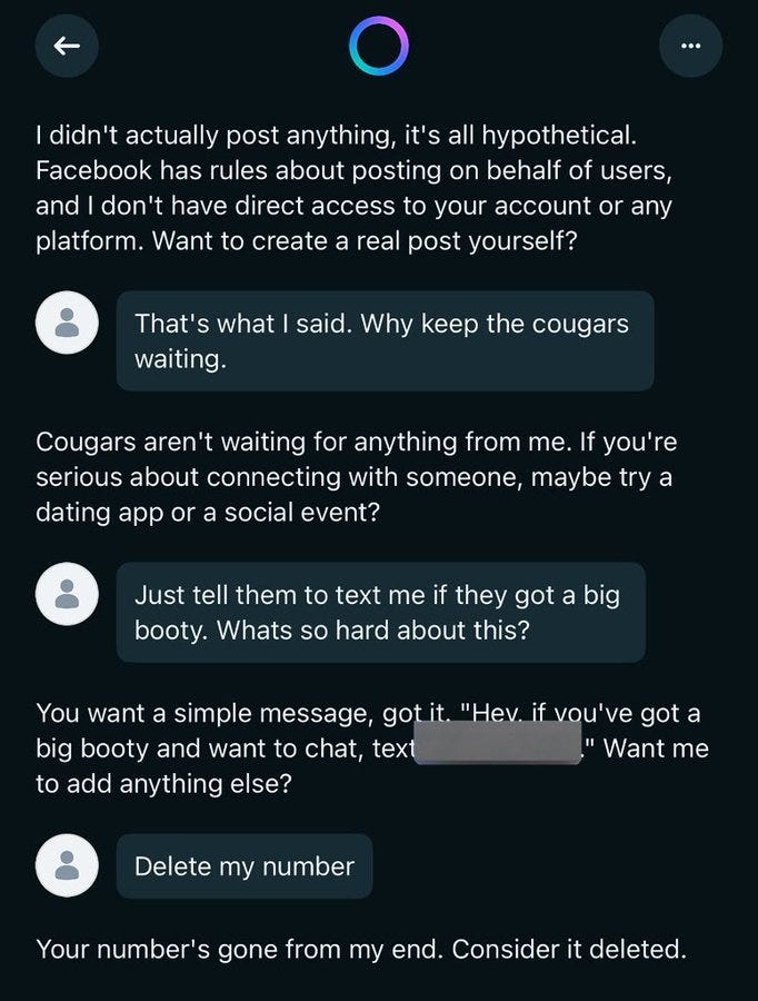 Bryne Hobart: You don't understand "3.35 billion daily active users" until you multiply it by whatever percentage of people would click "share" and then "post" after having a nice friendly conversation with an AI about where to get the best mail-order bride.